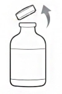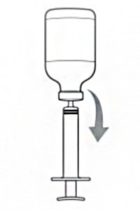 Insert the syringe into the cross(+) mark of the center of the rubber cap and pull the syringe to fill the ampoule.